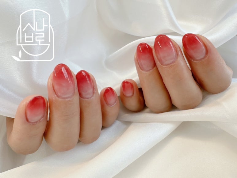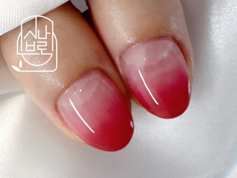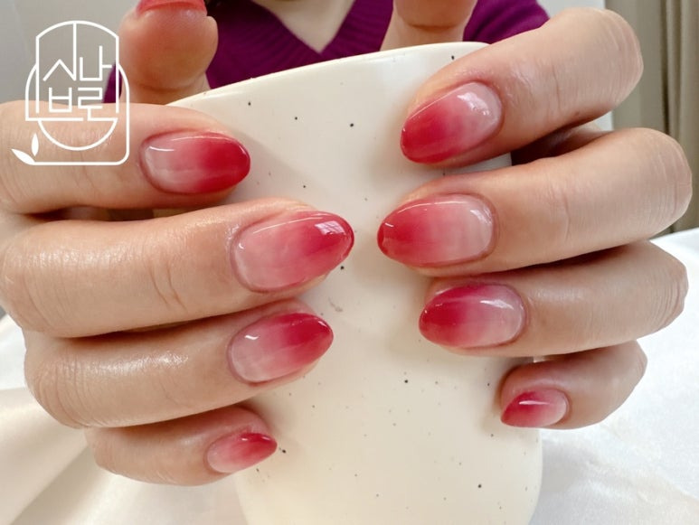 봉숭아물을 들인 듯한 느낌의 컬러로의 그라데이션이셨어요.